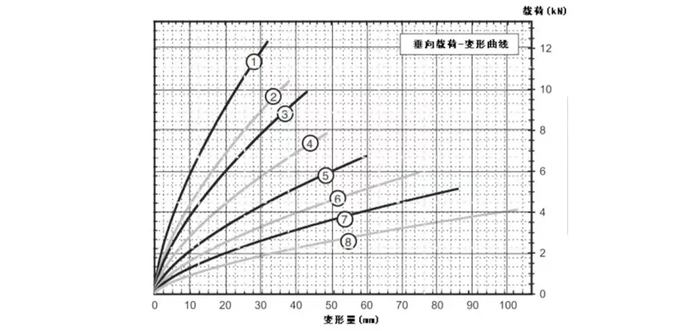 | Кривая № | Модель | Макс. статическая нагрузка (кг) | Макс. деформация (мм) | Жесткость при вибрации (кН/м) | Жесткость при ударе (кН/м) |